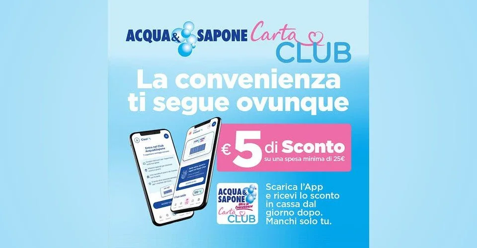 Scarica l'app Carta Club Acqua & Sapone su Google Play o App Store e registra il tuo account. Il giorno successivo il coupon da 5€ apparirà automaticamente nell'app.