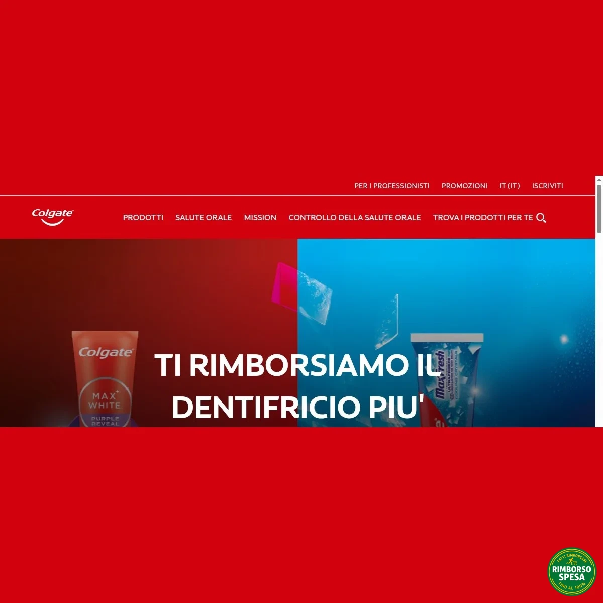 Ricevi il prezzo del dentifricio Max White più caro sullo scontrino, fino a 5,99€ di rimborso. Arriva via bonifico bancario (IBAN di cui sei intestatario o cointestatario, libretti postali esclusi) oppure su carta ricaricabile (no PayPal), entro 150 giorni dalla validazione.