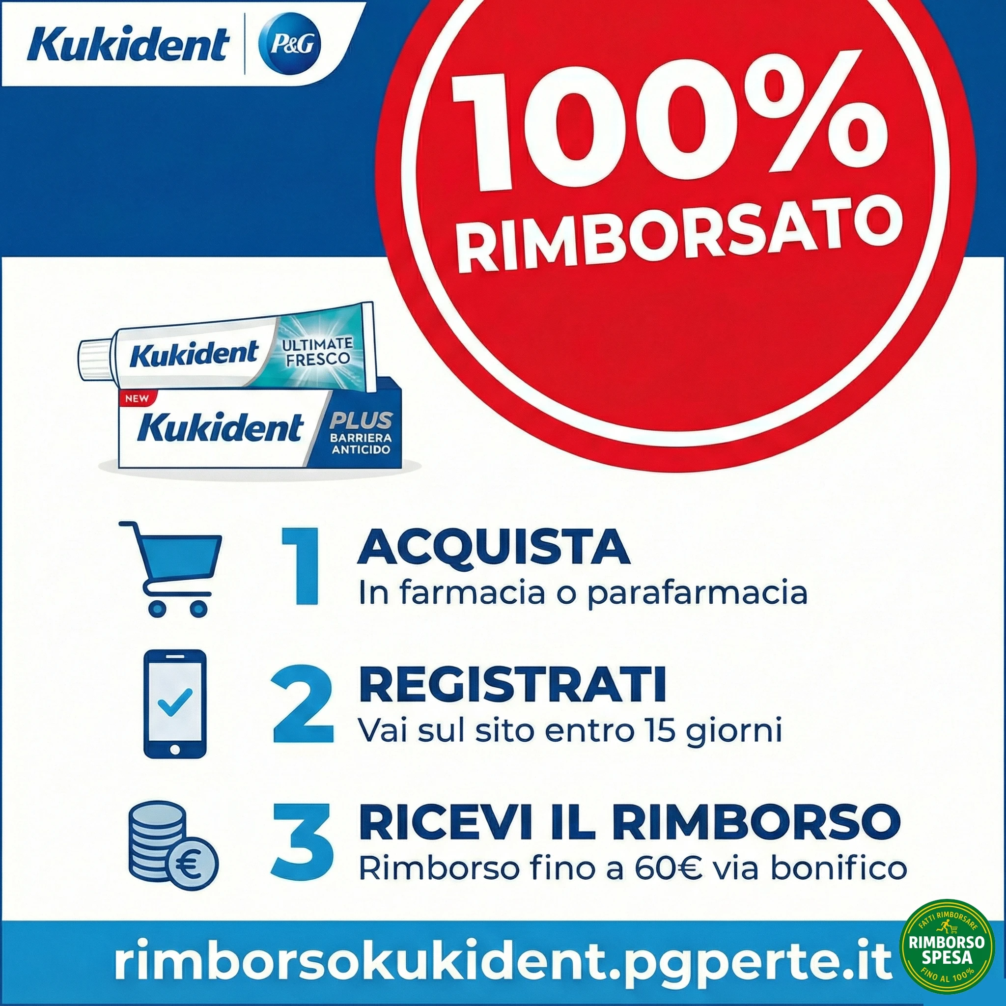 Compra almeno 1 prodotto Kukident (Ultimate o Plus, a tua scelta - vedi Tabella EAN sopra) in qualsiasi farmacia, parafarmacia o sanitaria e relativi e-commerce.