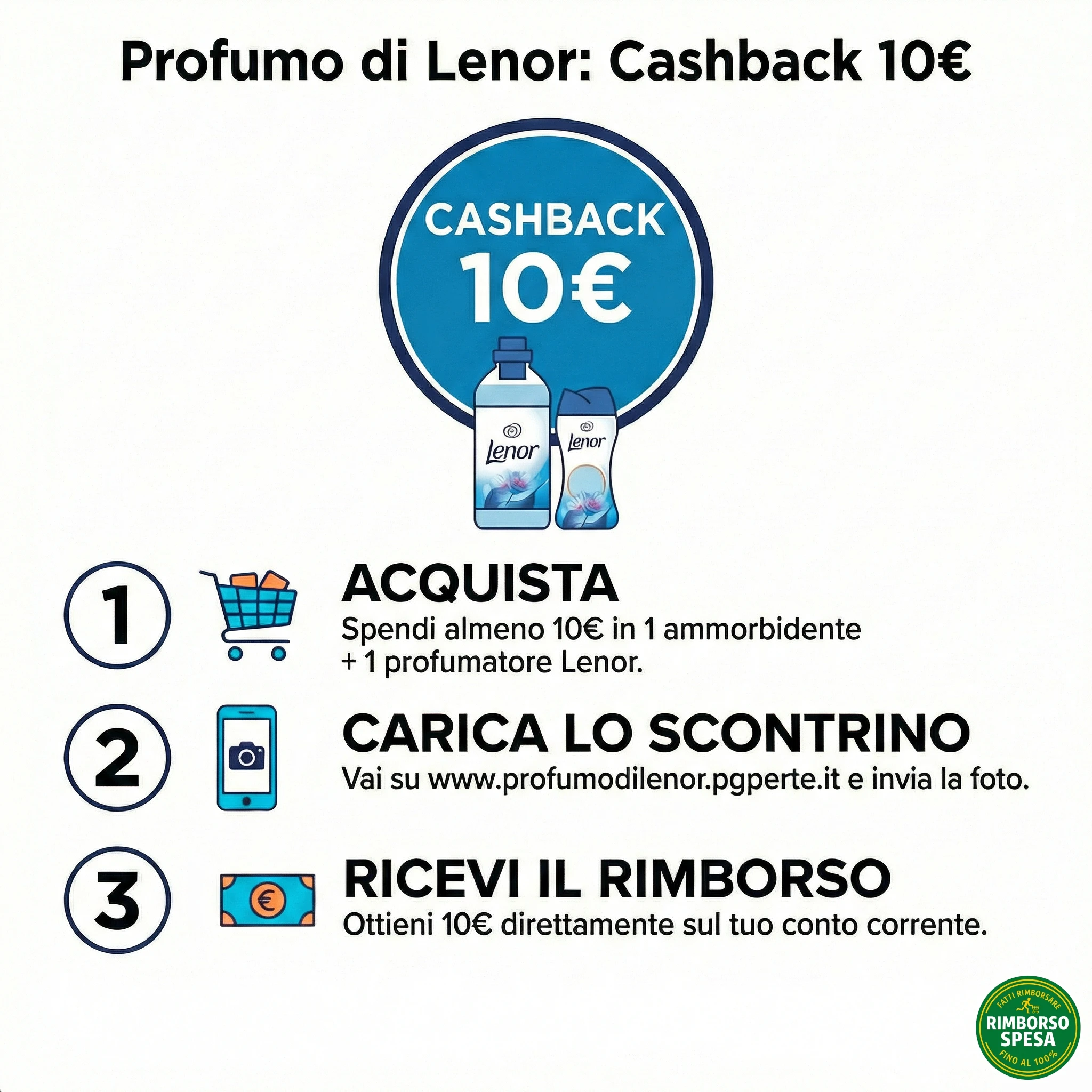 1 solo rimborso per persona durante l'intero periodo. Un solo codice fiscale, un solo IBAN, un solo scontrino per partecipazione. Conserva scontrino originale e codici EAN ritagliati per eventuali controlli.