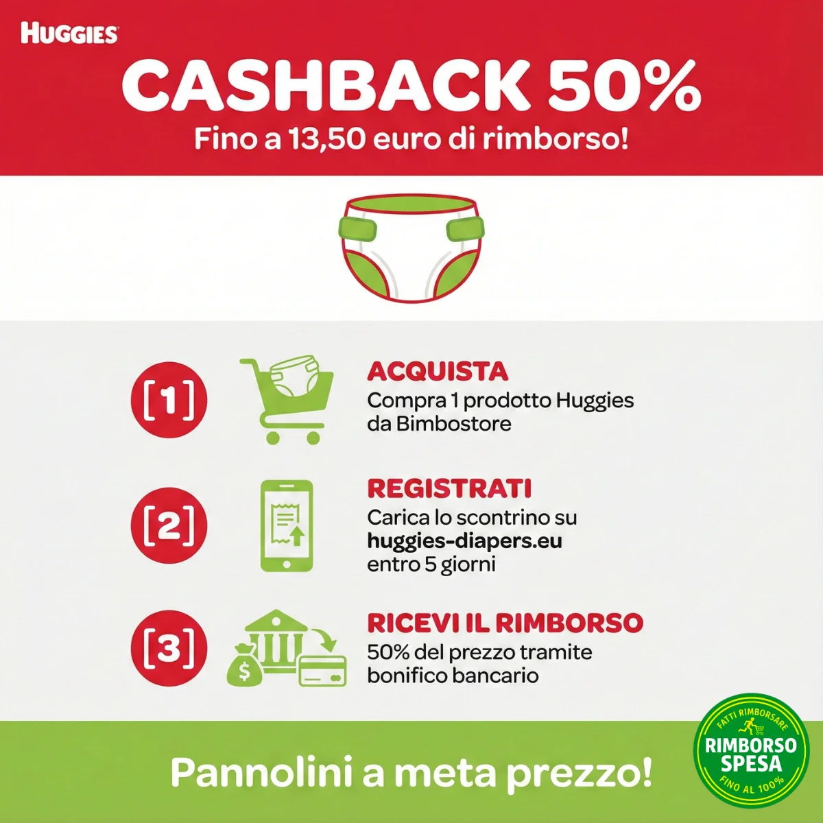 Cashback Huggies: ricevi il 50% di rimborso sui pannolini da Bimbostore!