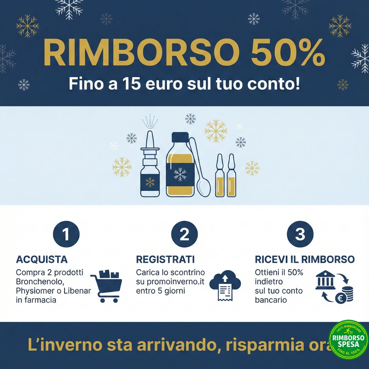 Affronta l'inverno: ricevi il 50% di rimborso su Bronchenolo, Physiomer e Libenar!