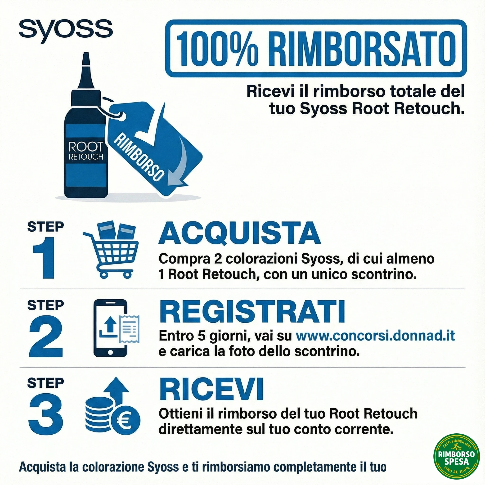 Compra 2 prodotti colorazione Syoss, di cui almeno 1 Syoss Root Retouch, con unico scontrino parlante nei punti vendita aderenti che espongono materiale promozionale. Validi anche e-commerce di insegne con negozi fisici. ESCLUSO: Amazon.it e e-commerce puri. Se Root Retouch costa meno di 7,50β¬ = praticamente GRATIS!
